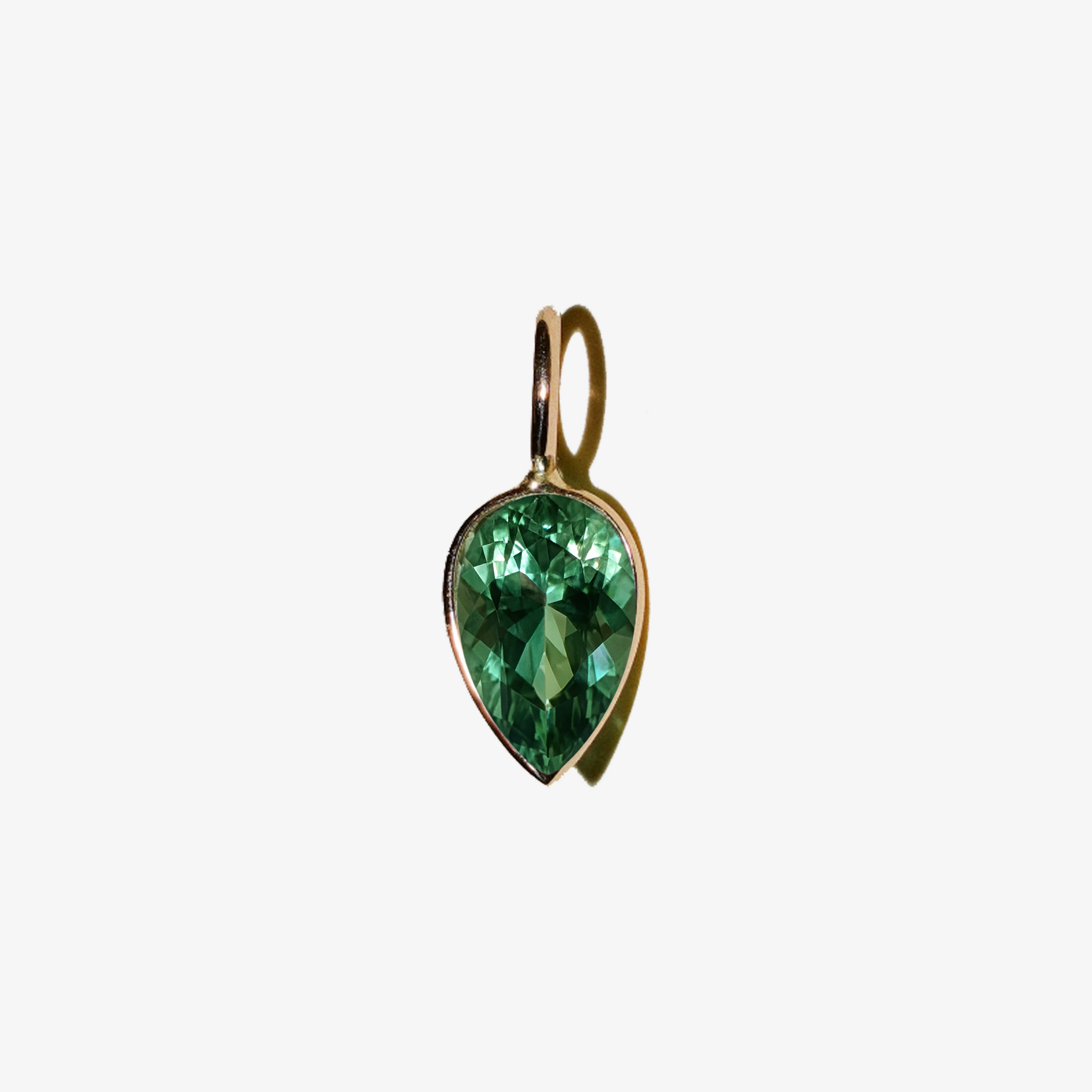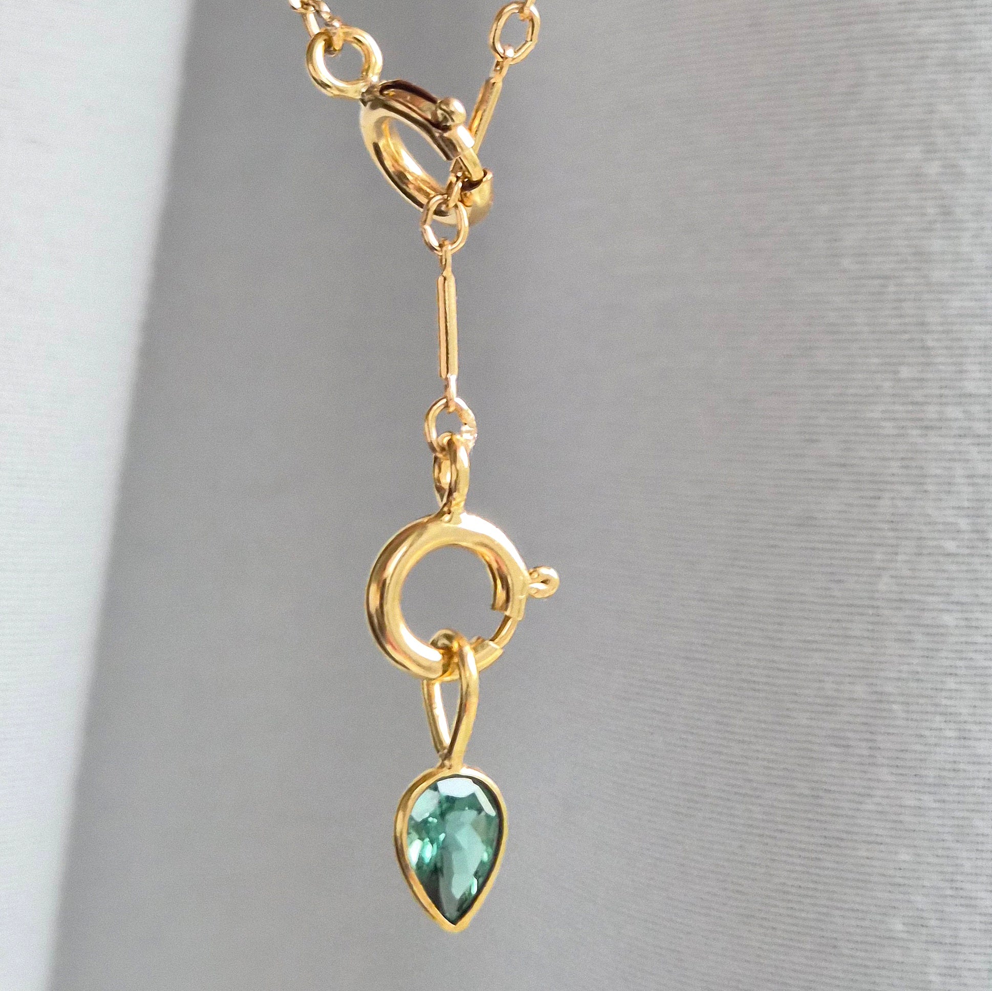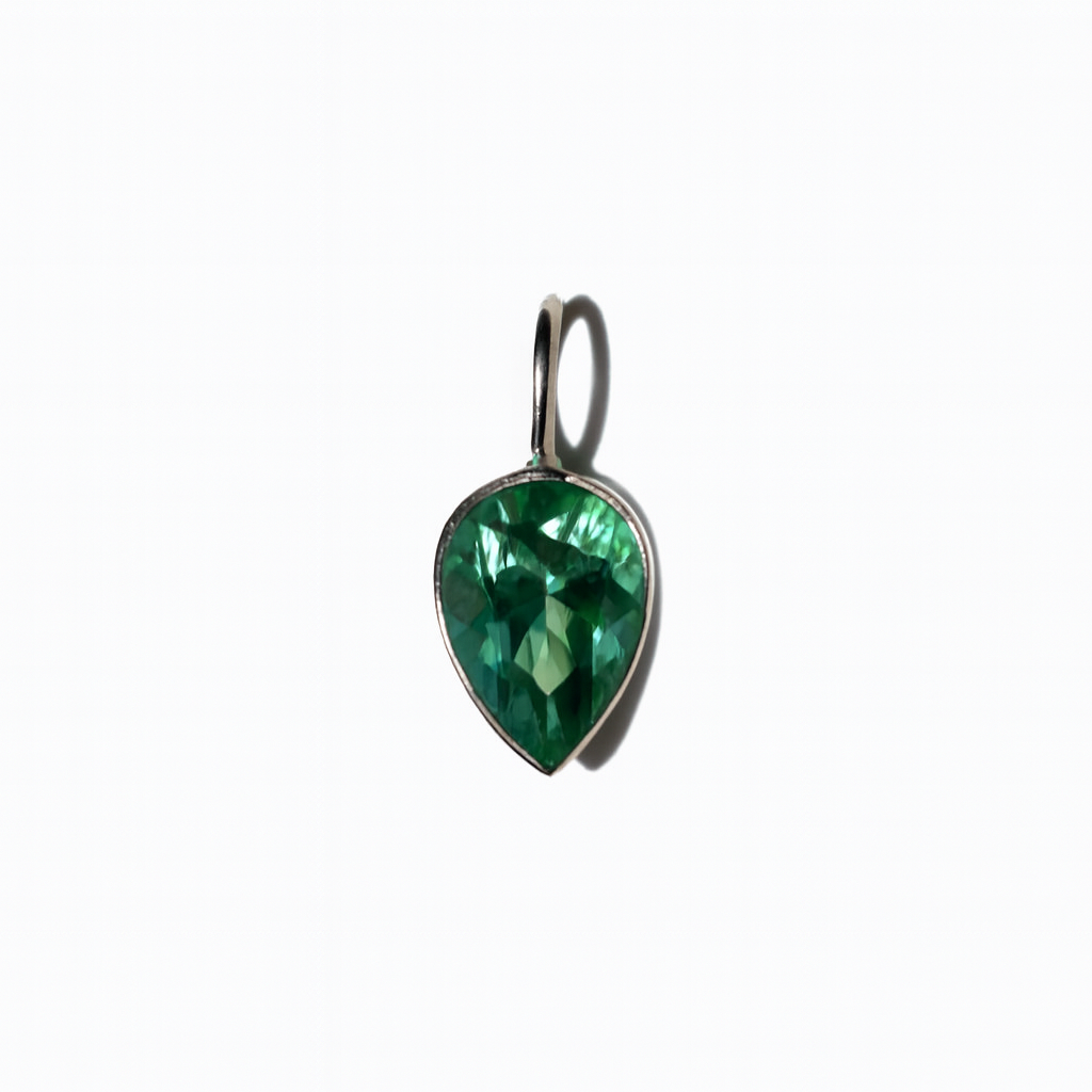 The Tourmaline Charm features a pear shaped authentic green Tourmaline with a loop bail.
